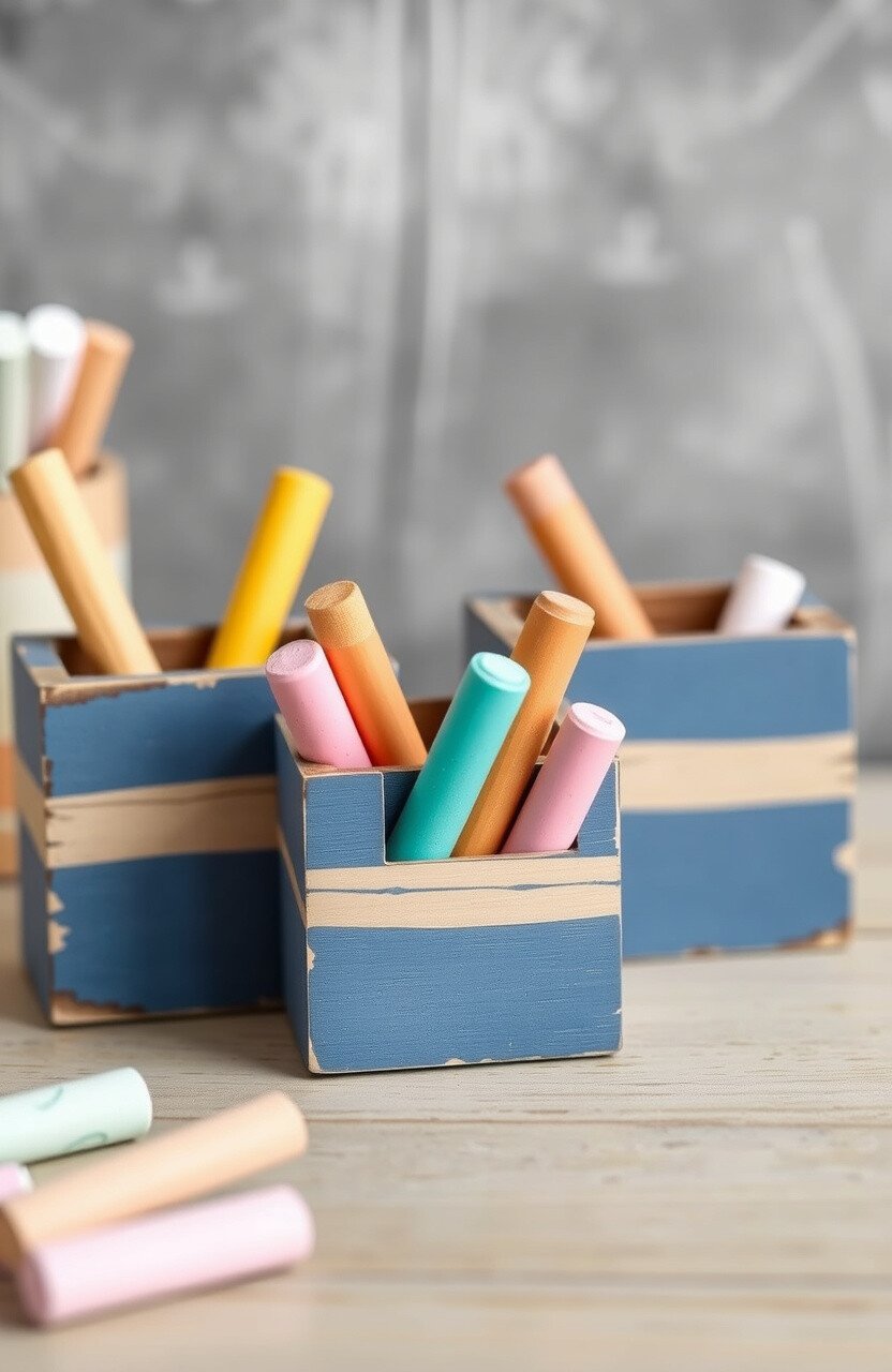 Wooden chalk holders keep chalk tidy. They are charming and rustic. These holders add a natural touch to classrooms. They are perfect for organizing chalk.