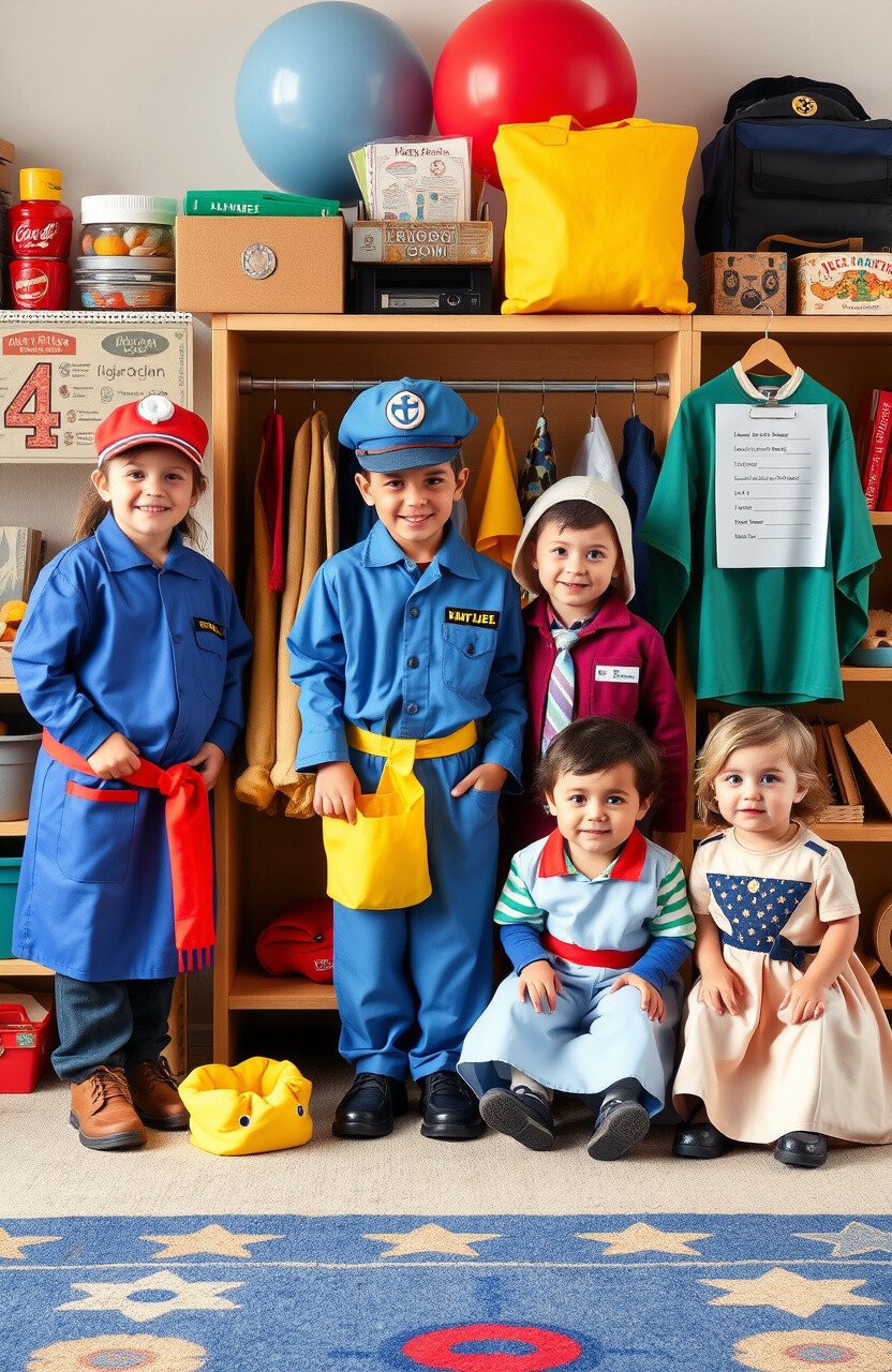 Use thrifted costumes for budget-friendly fun. Enjoy a classroom where students explore the world of community helpers!