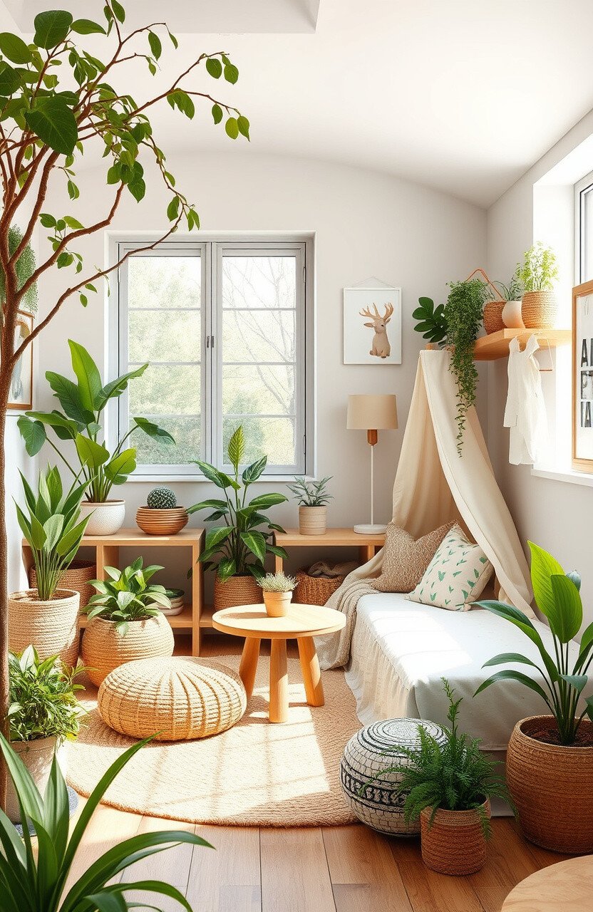 Bringing the outdoors inside can create a calming environment for little ones. Nature-inspired nooks are perfect for reading or quiet time.