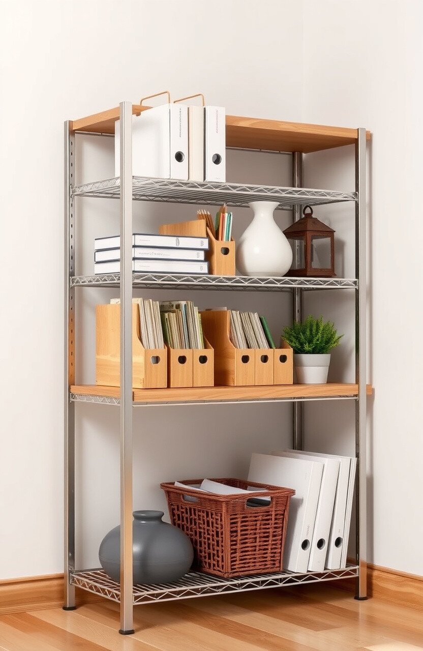 Metal racks are sturdy and reliable. Wooden shelves add warmth and style.
