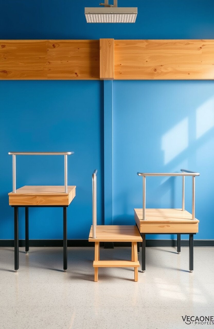 Choose different wood finishes for variety. This personalizes stools and adds charm.