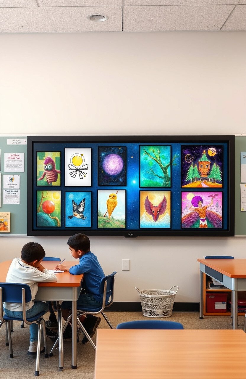 Install digital frames that rotate student artwork. Each piece gets its moment to shine, like a gallery exhibition.