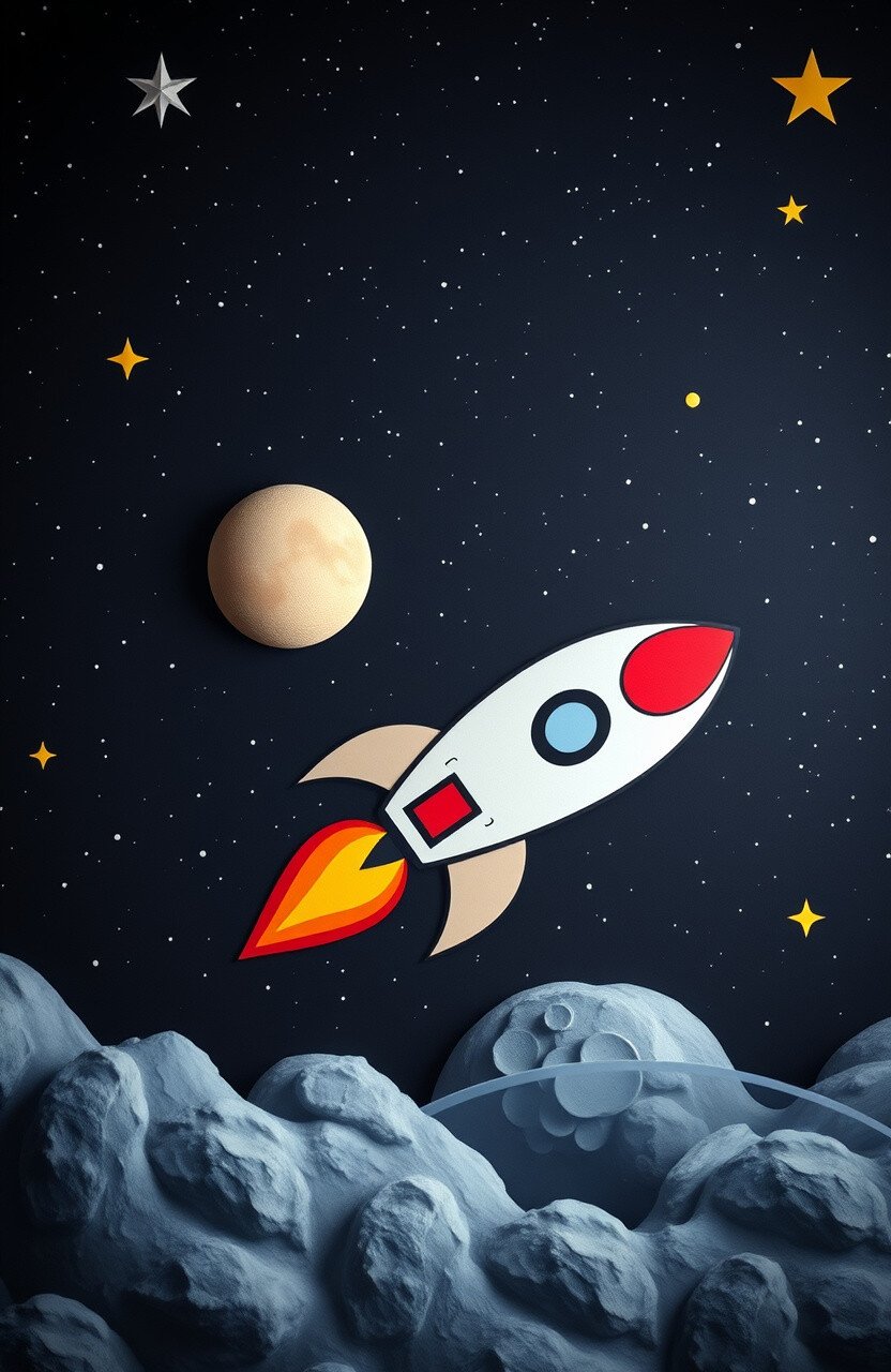 Embark on a journey through the cosmos with stars, astronauts, and planets. Use dark blues and bright whites to create a space-like atmosphere.