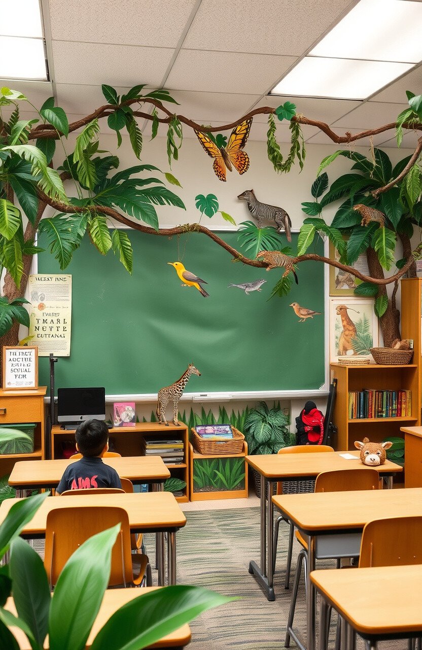 Bring the wild to the classroom with animal prints. Decorate with vines and leaves for an authentic look.