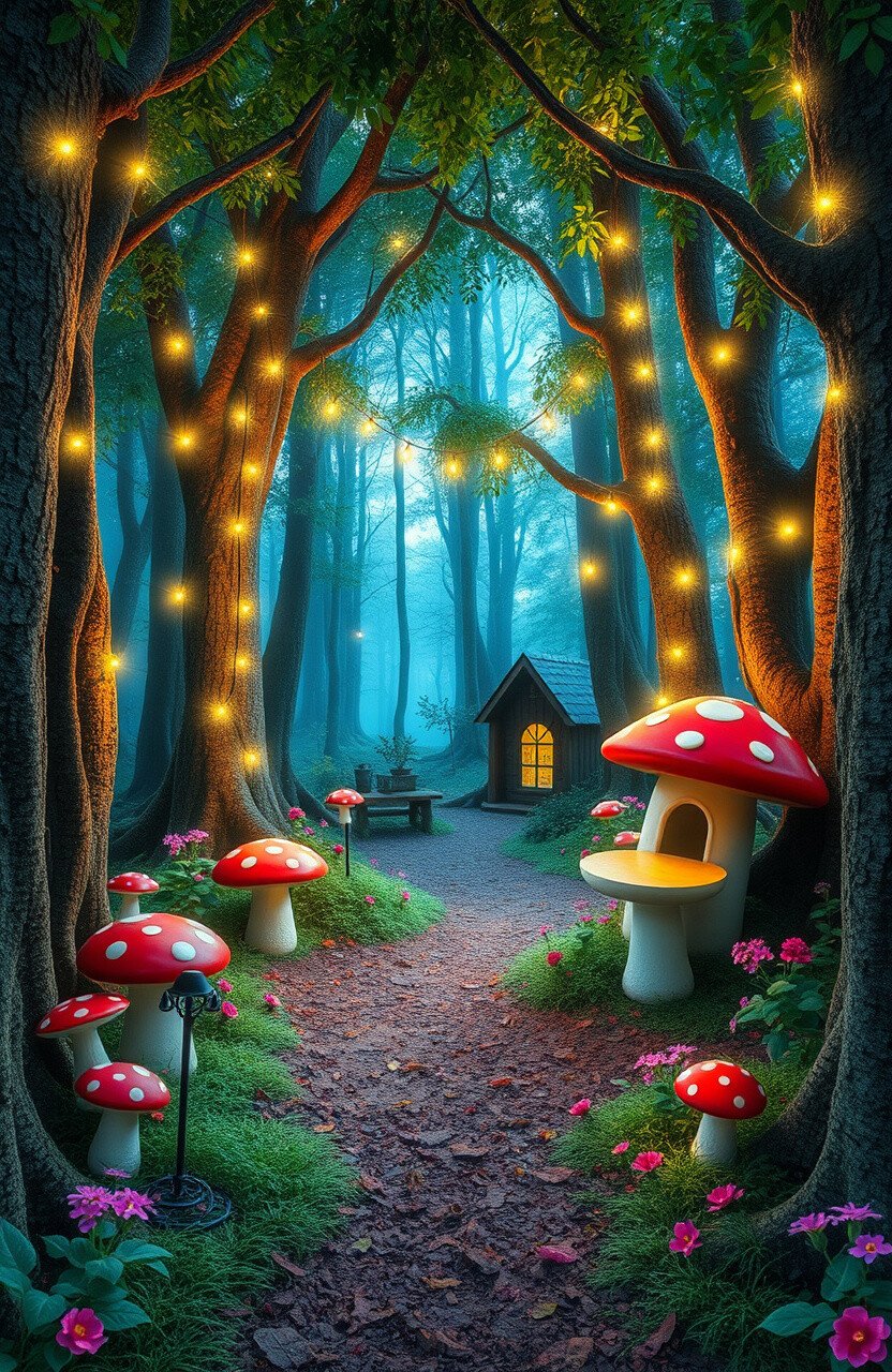 Step into a magical forest filled with enchantment. Use fairy lights and toadstool seats for whimsy.