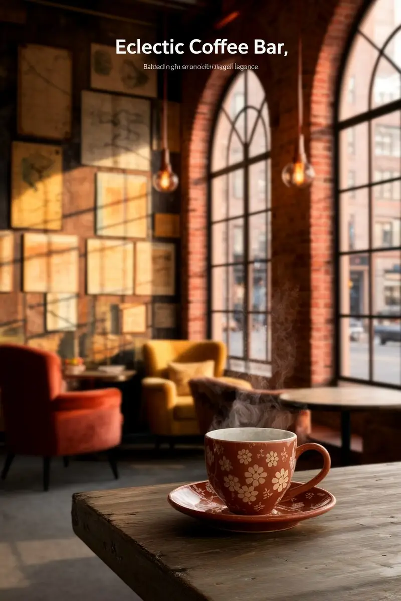 Mixing various styles and colors makes the eclectic coffee bar vibrant and dynamic. It’s perfect for those who love to express their creativity.