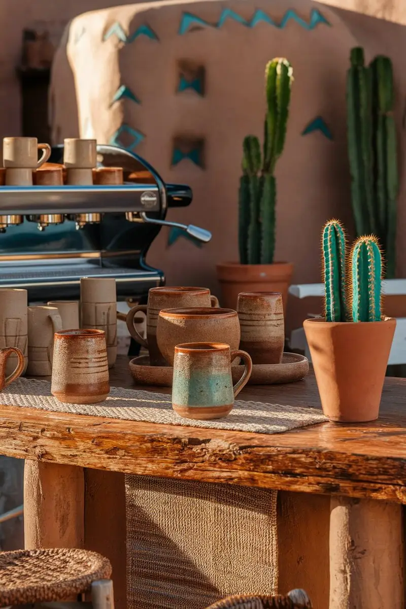 Personalize with southwestern art or pottery. These touches make your coffee bar feel warm and uniquely yours.
