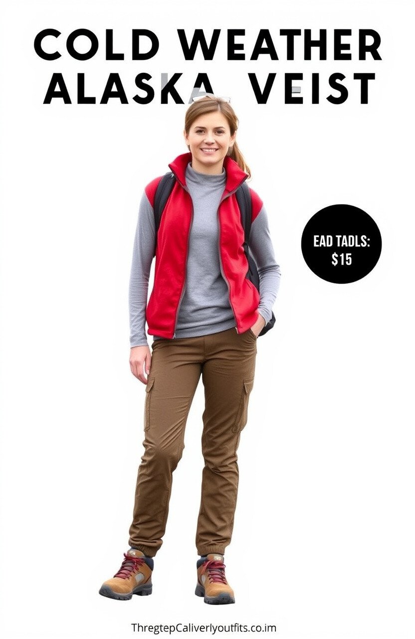 The earthy tones blend beautifully with Alaska’s landscape. Add waterproof boots for those adventurous shore excursions. This outfit is a hug from nature itself.