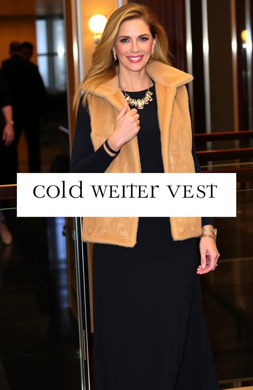 Shine bright with a gold fleece vest. Layer it over a black dress for a stunning contrast.