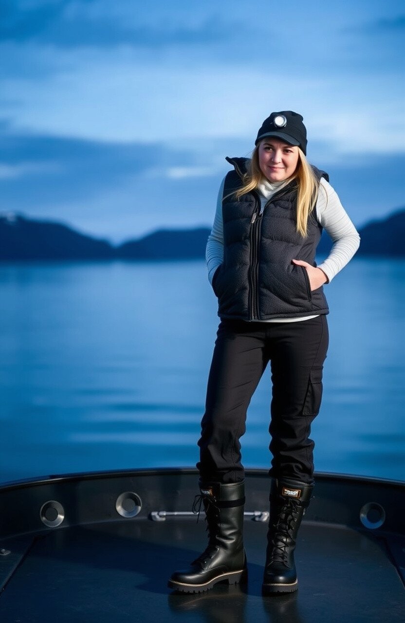This outfit is built for warmth and exploration. It’s ideal for chilly days on the water.