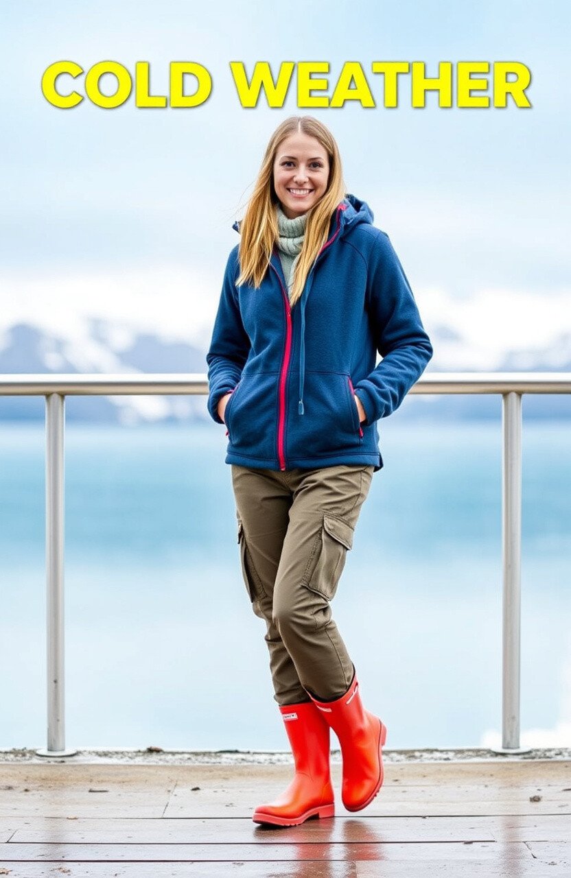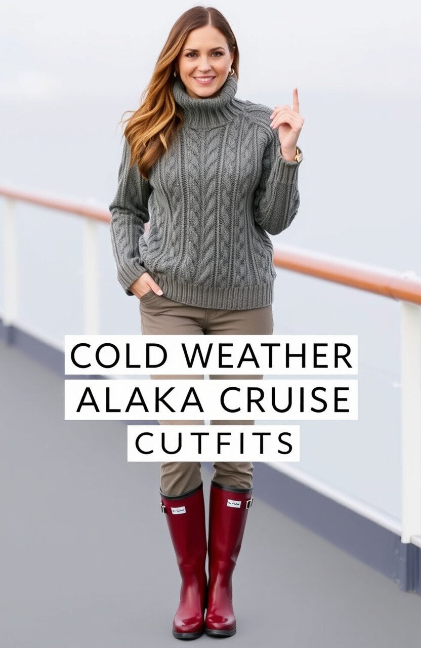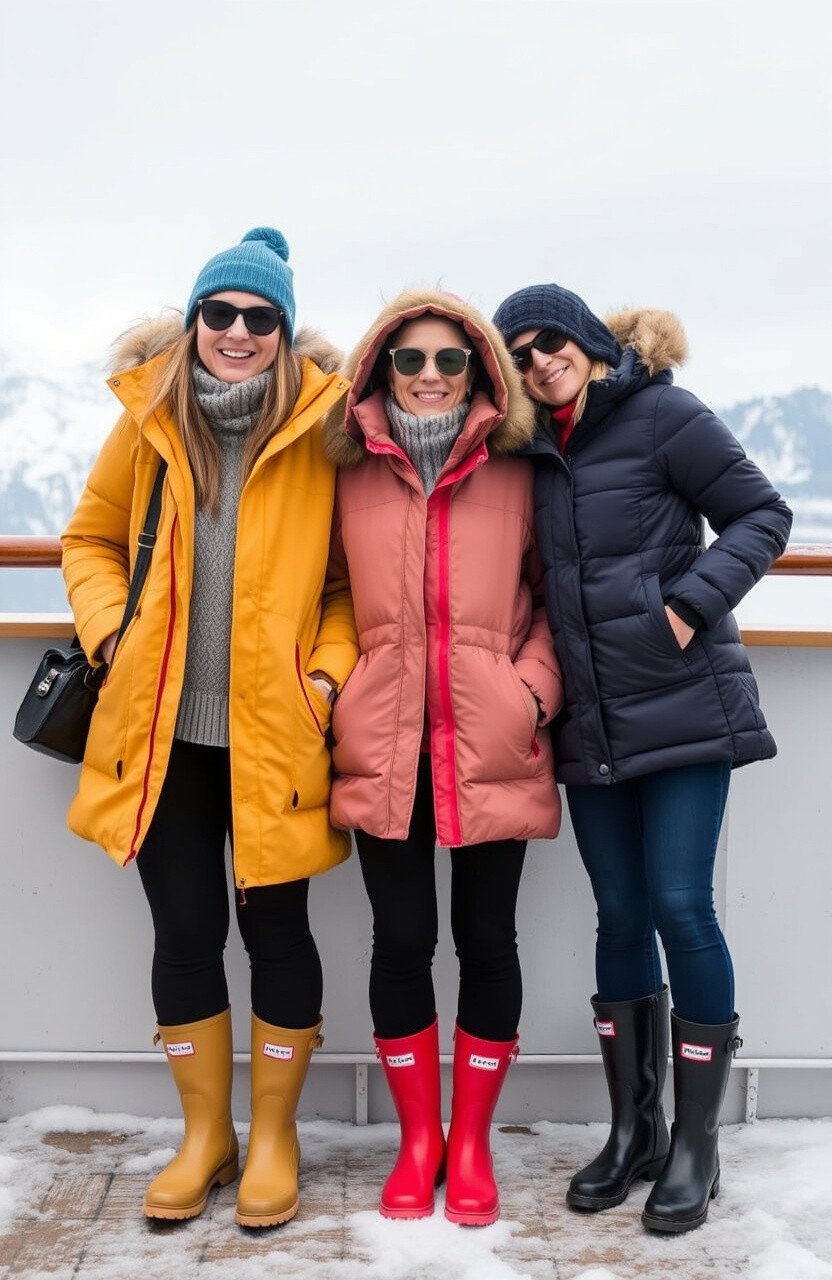 Imagine stepping onto an Alaskan cruise, the chilly breeze kissing your cheeks, and you’re dressed perfectly for the adventure. These outfit ideas pair seamlessly with rain boots, ensuring you’re both stylish and snug.