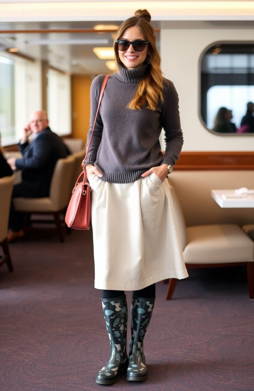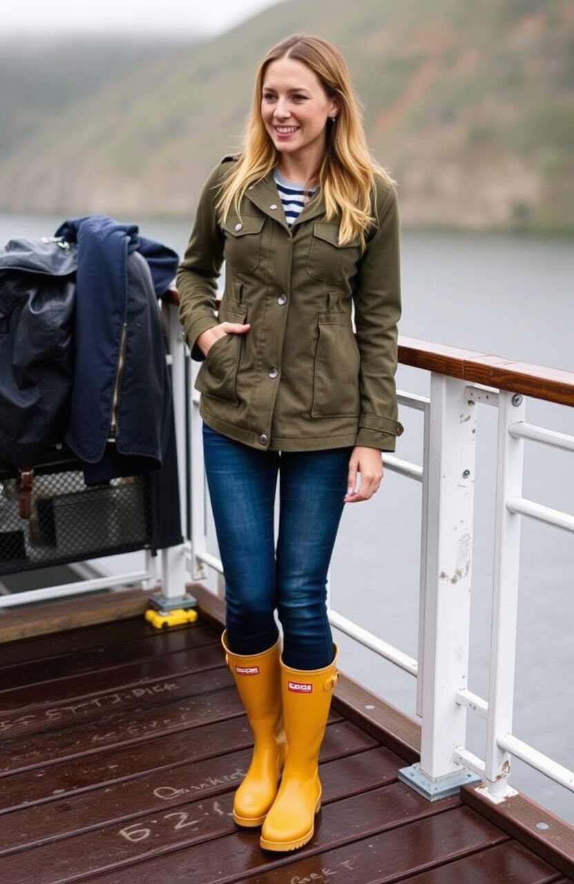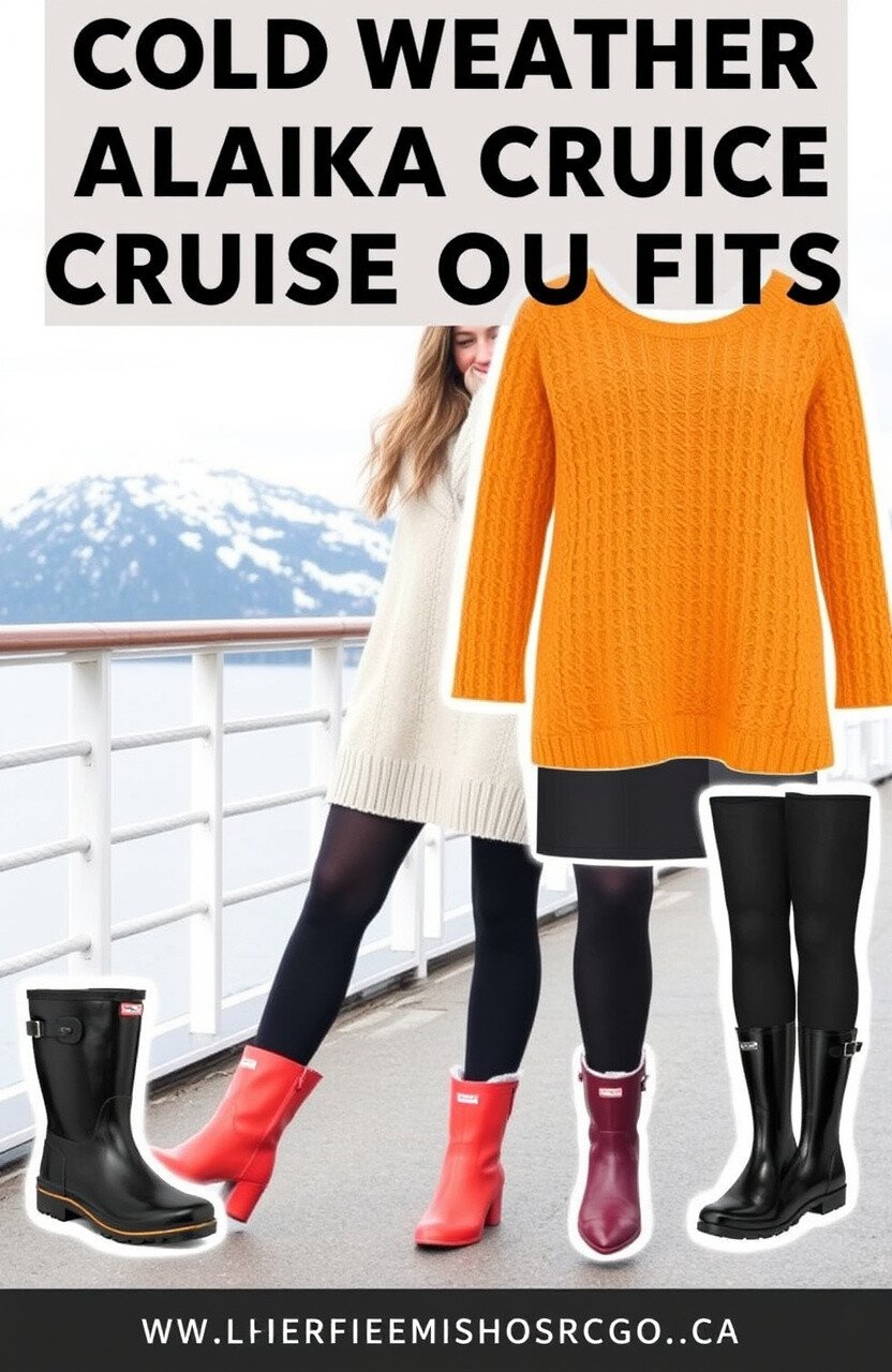Imagine stepping onto an Alaskan cruise, the chilly breeze kissing your cheeks, and you’re dressed perfectly for the adventure. These outfit ideas pair seamlessly with rain boots, ensuring you’re both stylish and snug.
