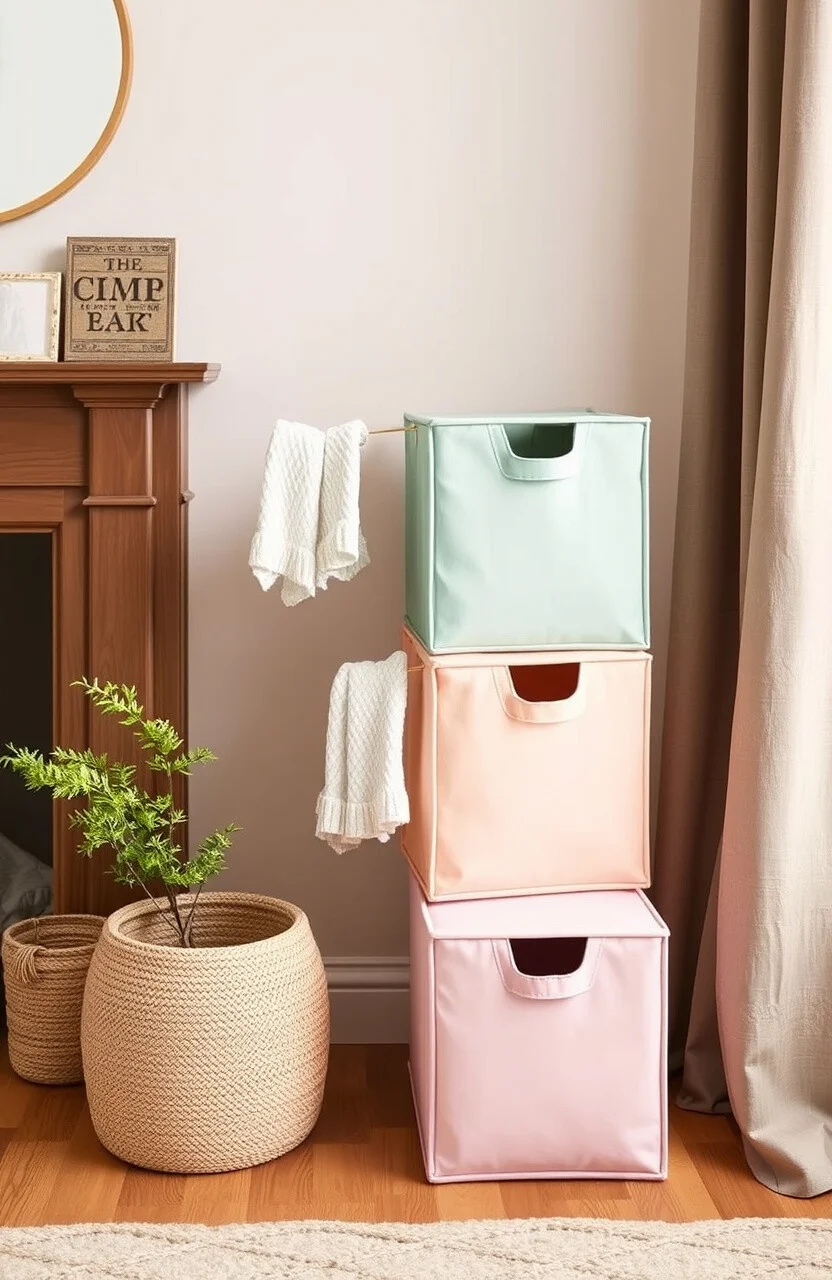Pastel cube bins add a soft and calming touch to any room. They’re ideal for nurseries or bedrooms, offering a peaceful vibe.