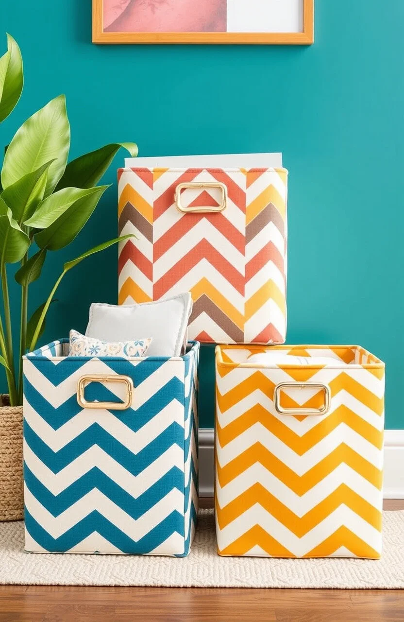 They help organize items like books or magazines while adding a touch of sophistication. Chevron patterns are eye-catching and bold.