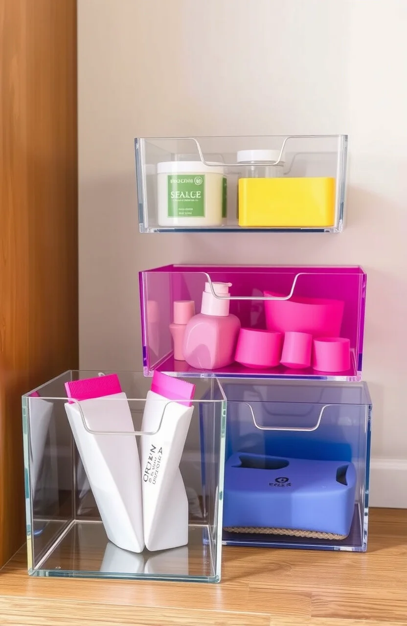 Transparent acrylic bins offer a sleek and modern look. They’re perfect for offices or bathrooms, providing a clean and organized feel.