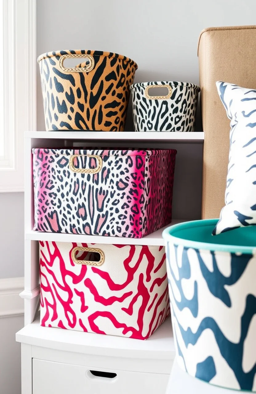 Animal print bins add a wild and adventurous touch to any room. They’re perfect for bedrooms or offices, offering a bold and daring look.