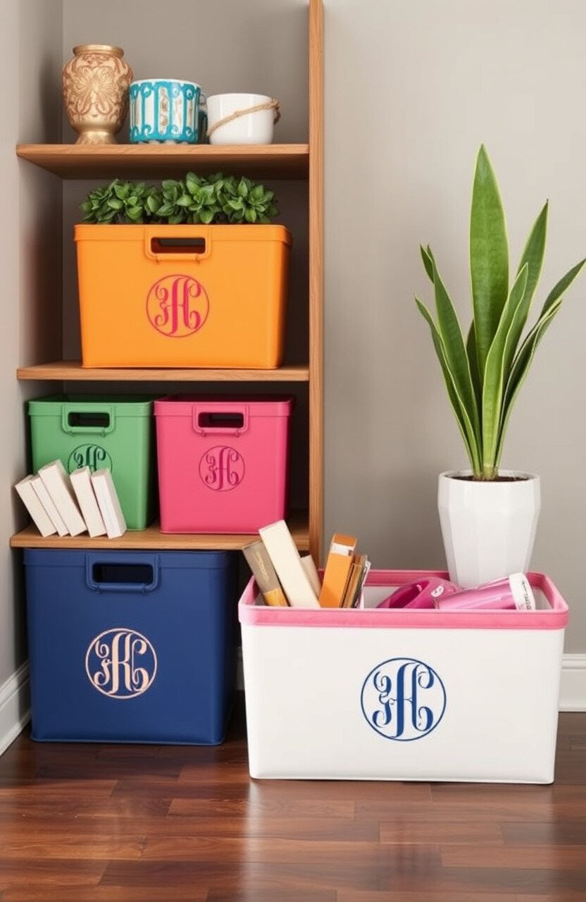 Monogrammed bins add a personal touch to any room. They’re perfect for offices or bedrooms, offering a customized and elegant look.