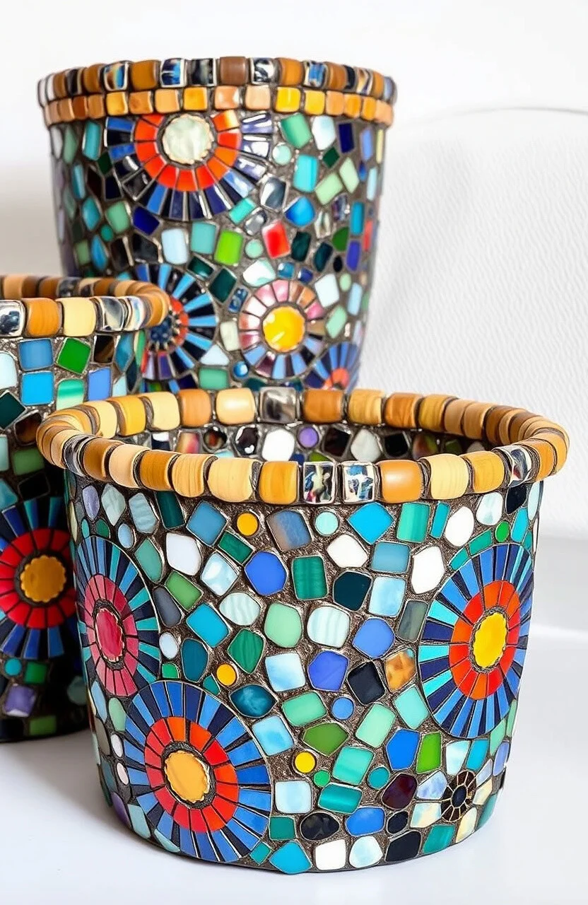 Mosaic bins add a touch of artistic beauty to any space. They’re perfect for living rooms or offices, offering a colorful and unique look.