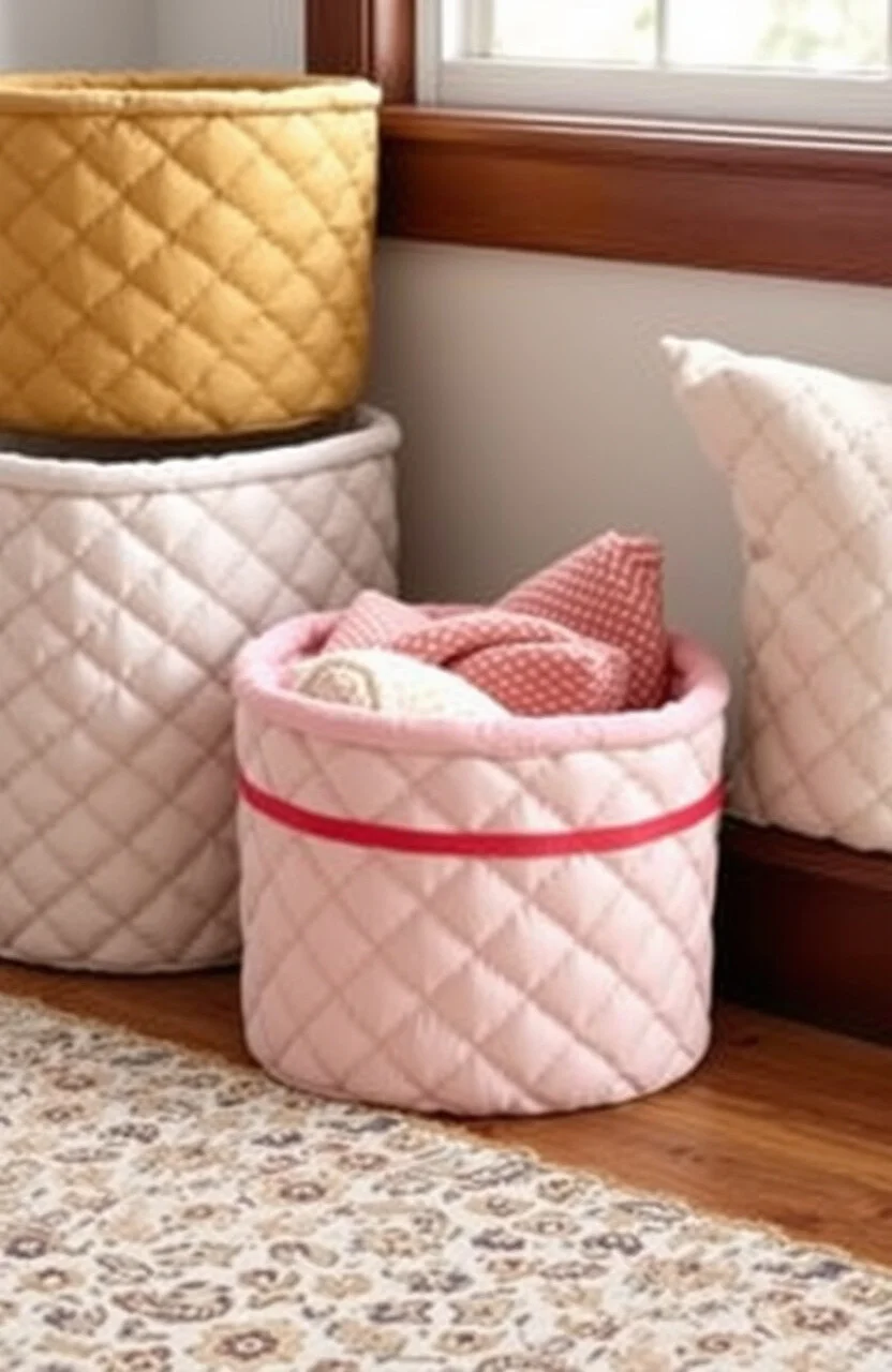 Quilted bins offer a cozy and sophisticated look. They’re perfect for bedrooms or living rooms, providing a warm and inviting feel.