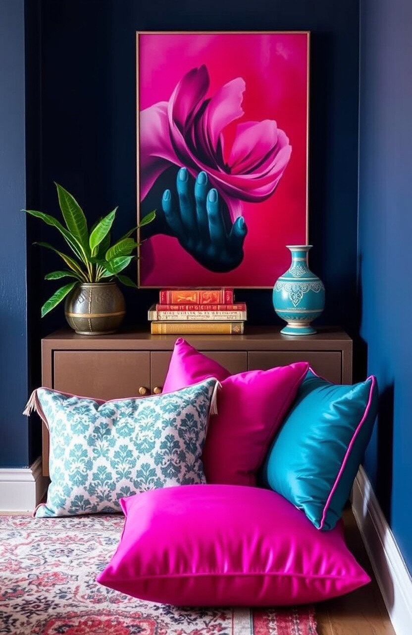 Make a bold statement with this fuchsia cushion. Its bright color is both daring and delightful.