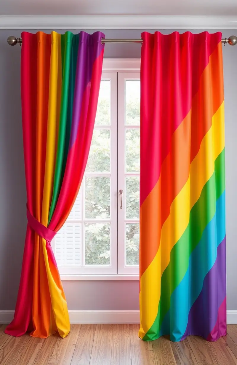 Rainbow curtains can make your windows look like a vibrant piece of art. They allow natural light to play with colors, creating beautiful effects.