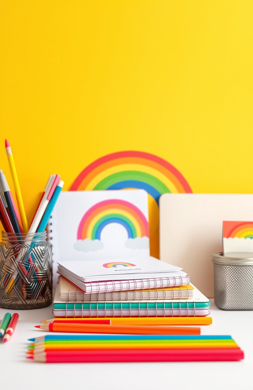 Brighten your desk with rainbow stationery. It adds a cheerful touch to your workspace.