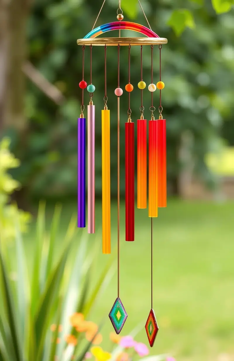 Add music and color to your space with rainbow wind chimes. They create a soothing and cheerful atmosphere.