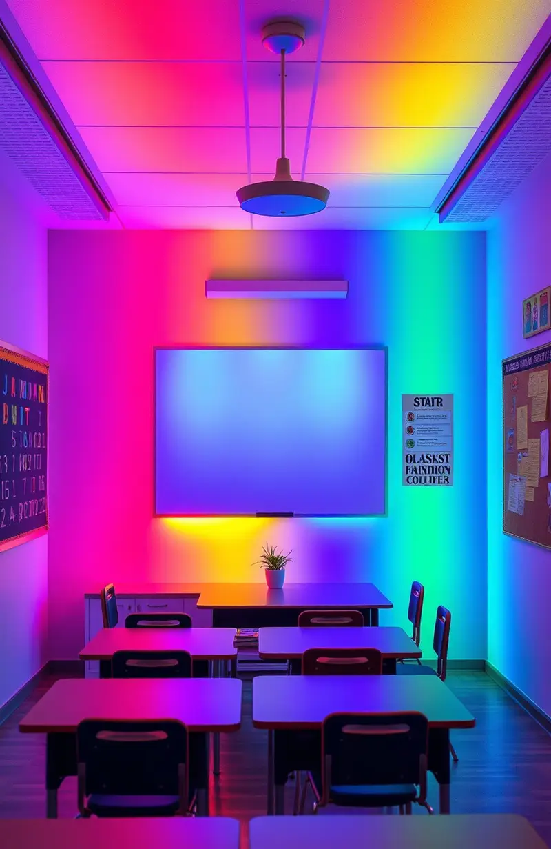 Use colored lights or lamps to create a warm, inviting atmosphere in the classroom. Lighting can greatly influence mood and learning.