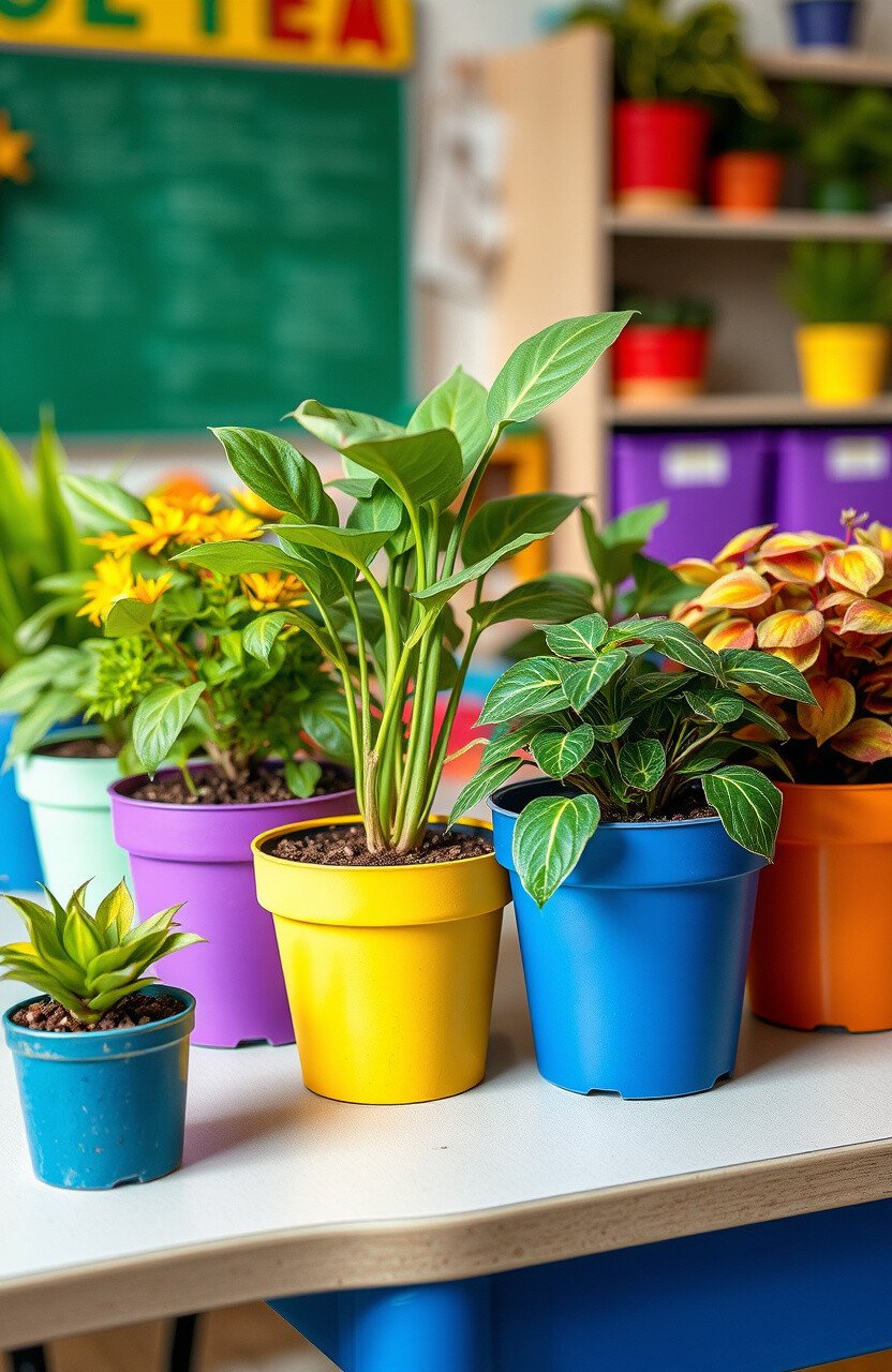 Brighten up the classroom with plants in colorful pots. This adds life and color while teaching students about nature.