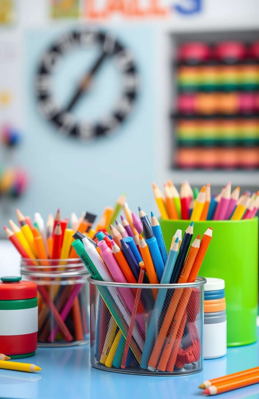 Display art supplies in colorful containers or organizers. They make creativity easily accessible and appealing.
