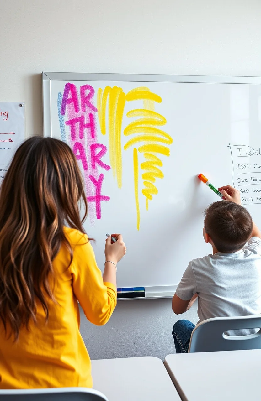 Use colorful markers to make whiteboard lessons more engaging. They add a playful element to presentations.