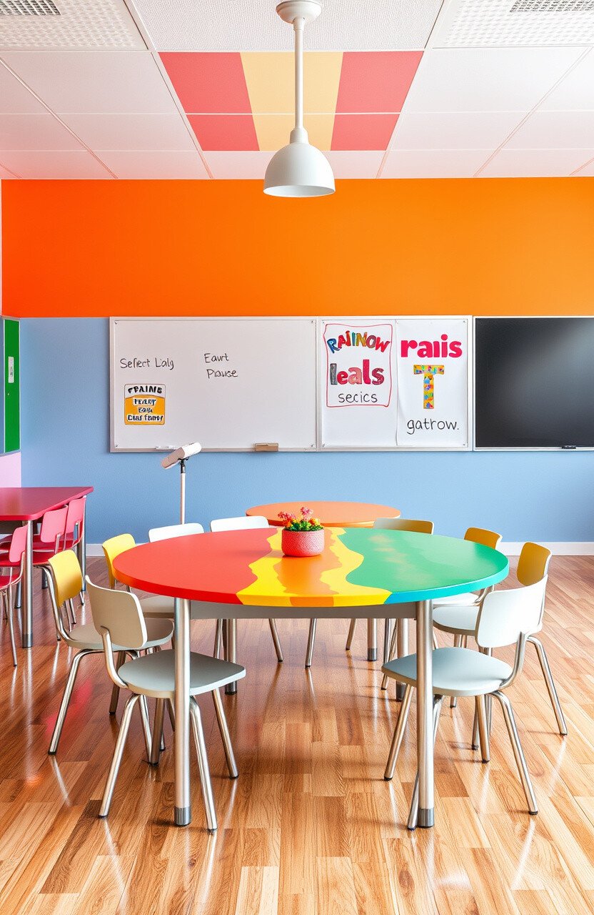Paint tables in different colors to create a vibrant learning environment. It adds a playful element to the classroom.