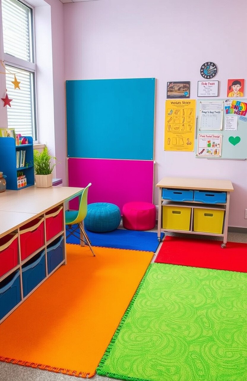 Introduce bright floor mats to create defined areas for activities or relaxation. They add comfort and color to any classroom.
