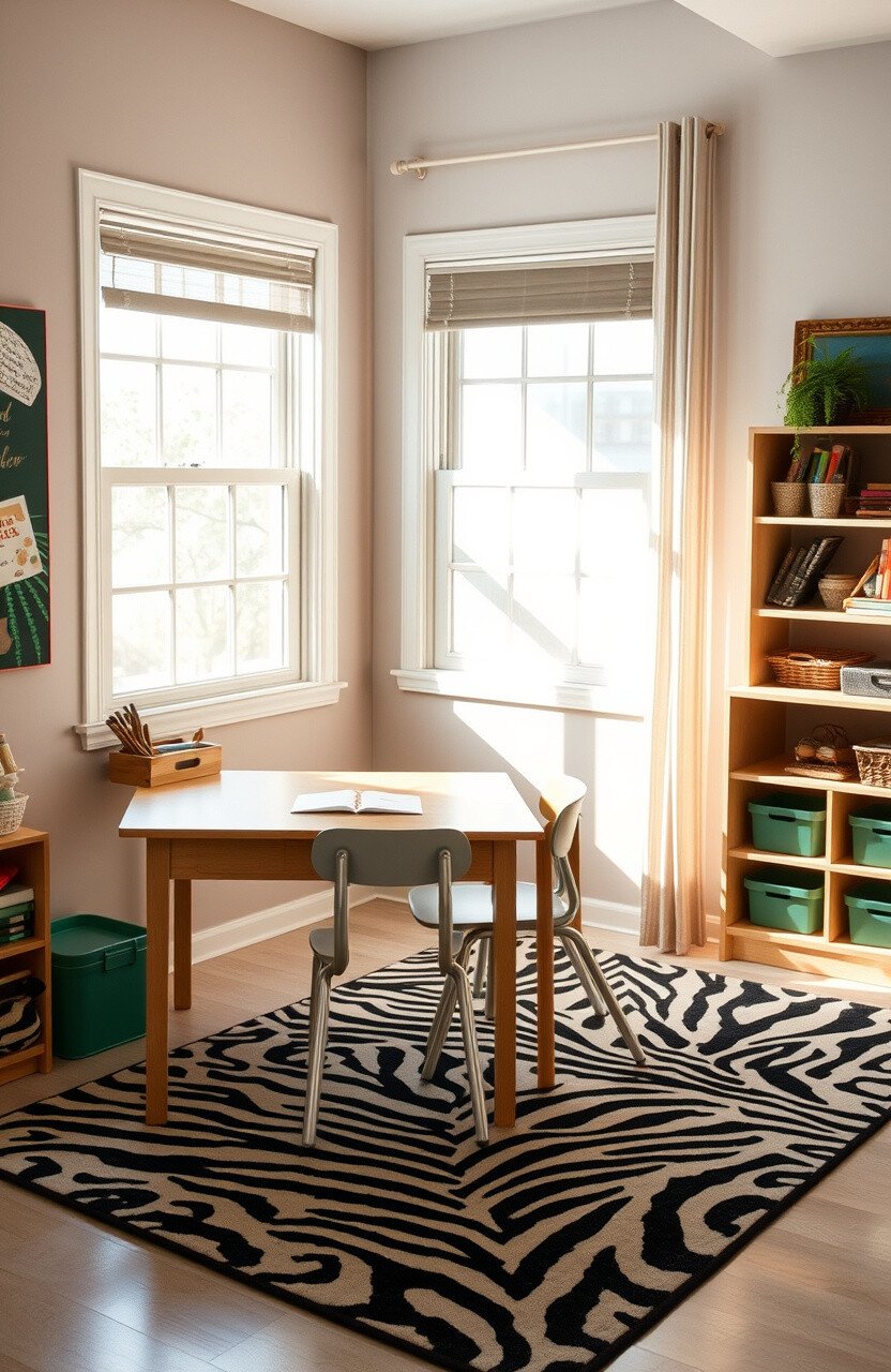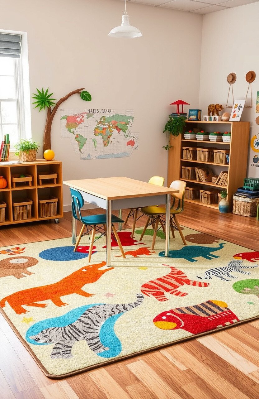 Safari-themed rugs can take students on a wild adventure. They add a sense of excitement and exploration to desks.