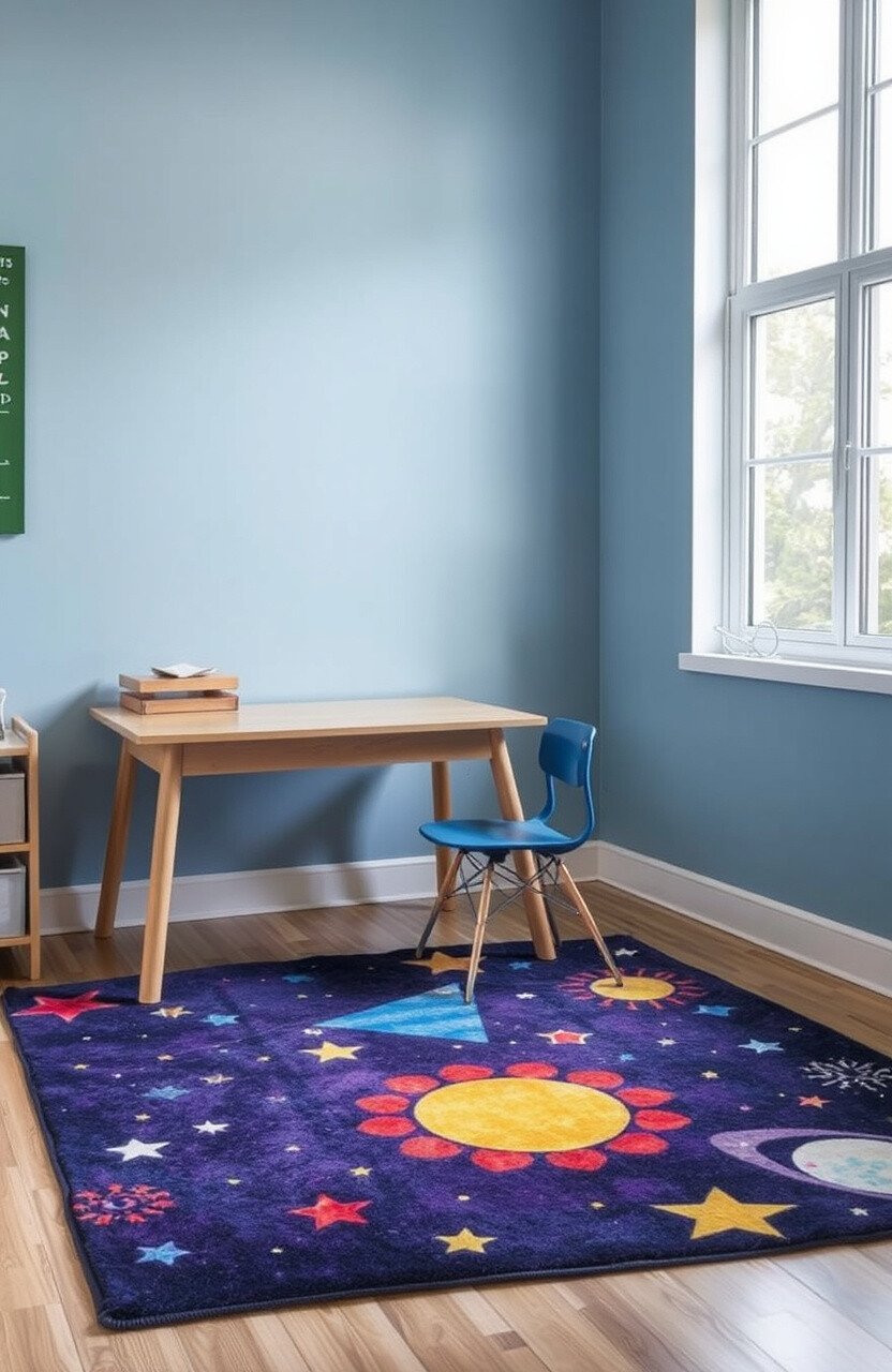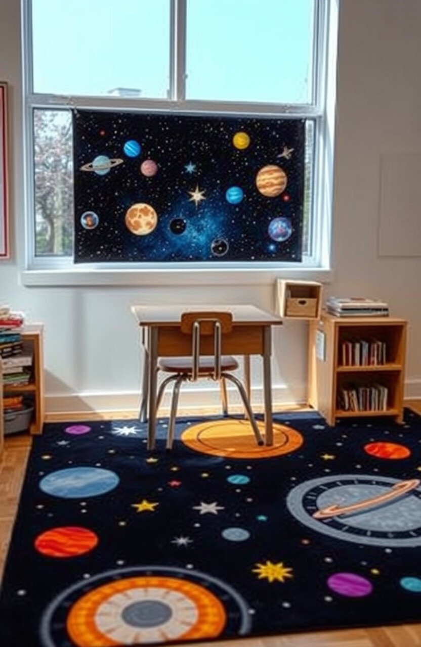 Space-themed rugs can take students on a cosmic journey. They add a sense of wonder and curiosity to desks.