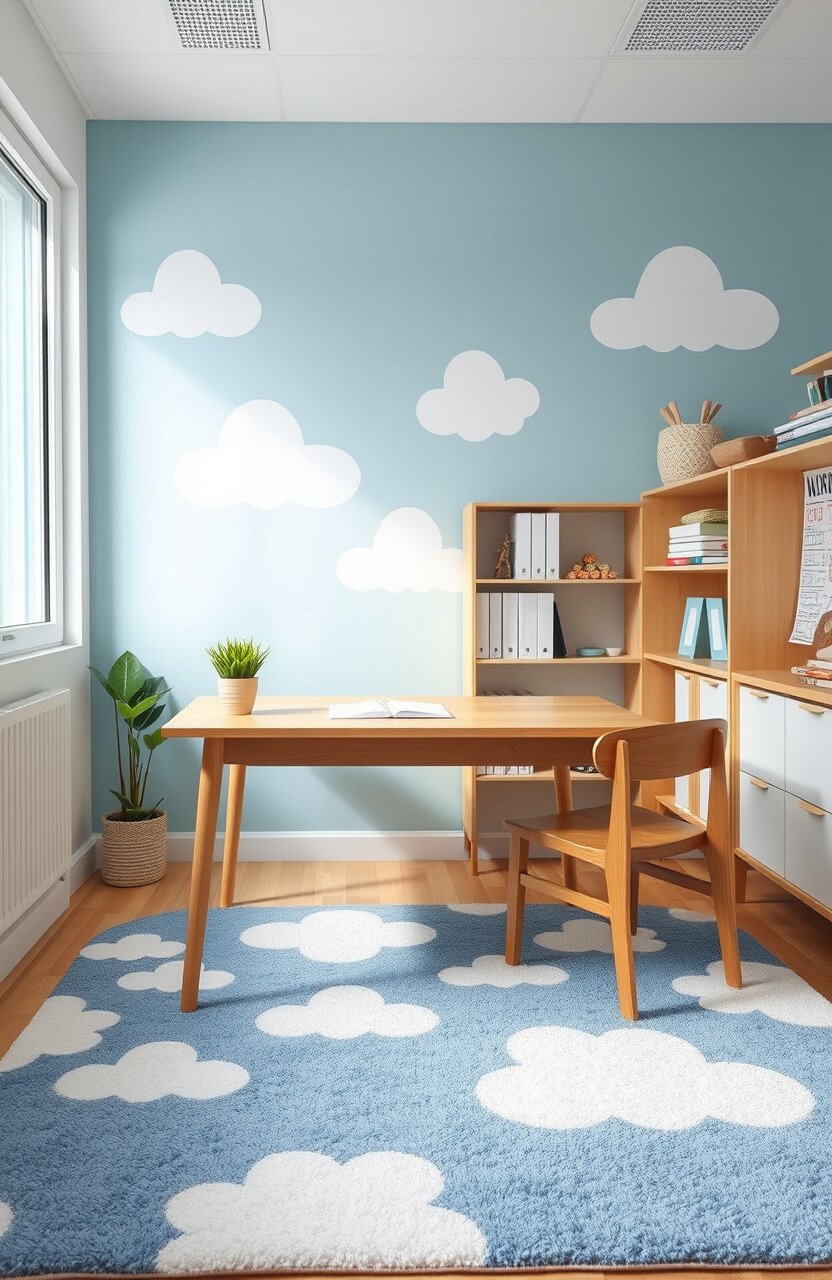 Cloud-patterned rugs bring a sense of calm and tranquility. They add a dreamy and peaceful touch to desks.