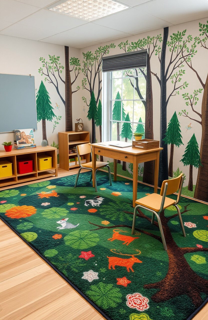 Forest-themed rugs can create an enchanting atmosphere. They add a touch of magic and wonder to desks.