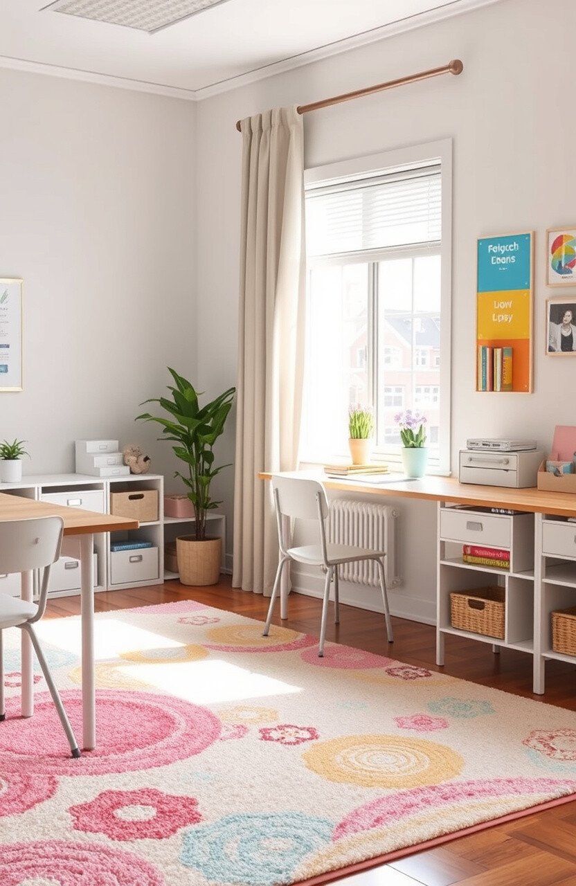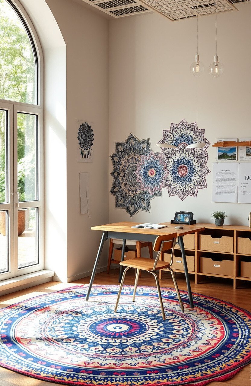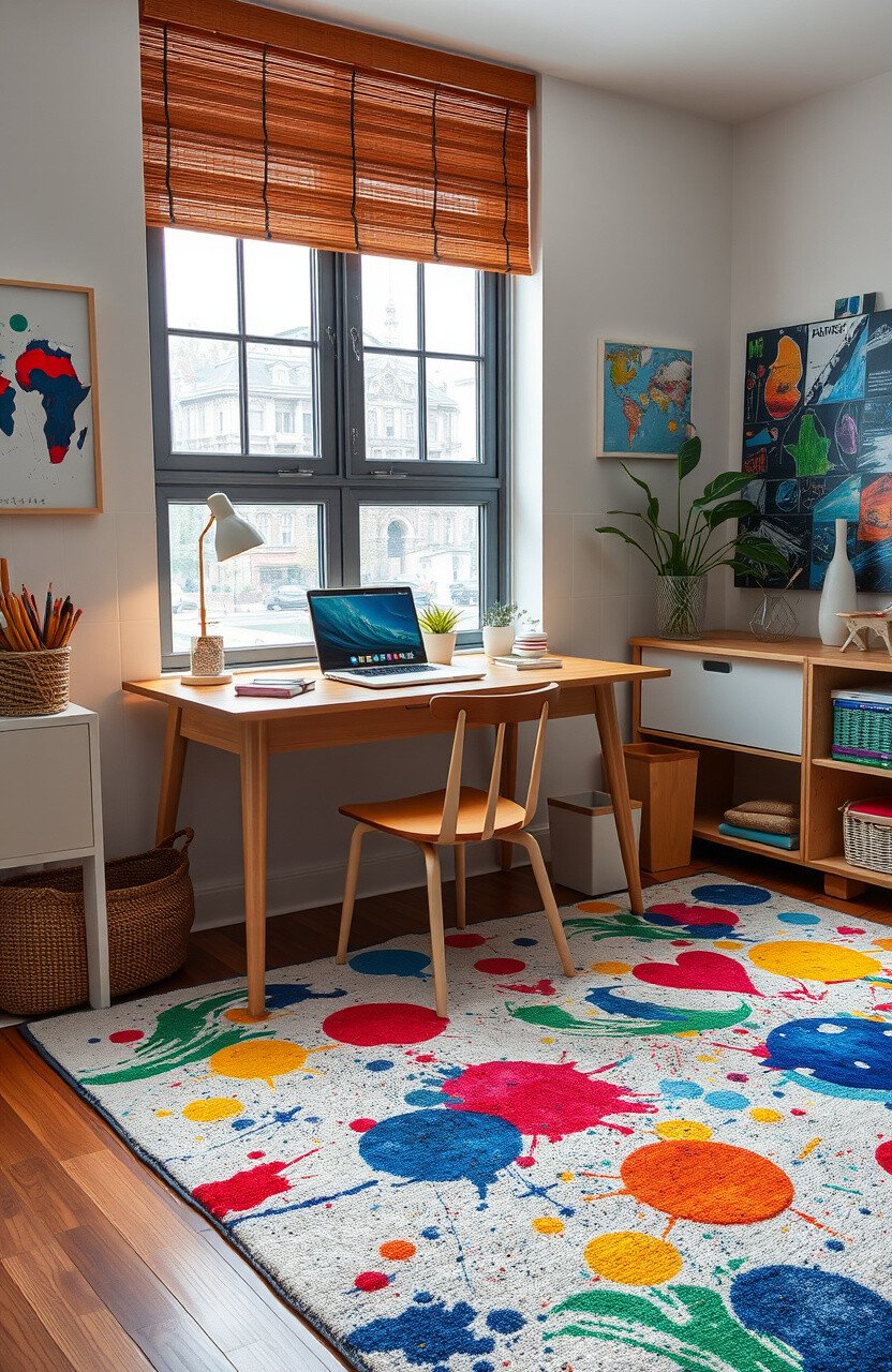 Art-themed rugs can inspire creativity and imagination. They add a colorful and dynamic touch to desks.