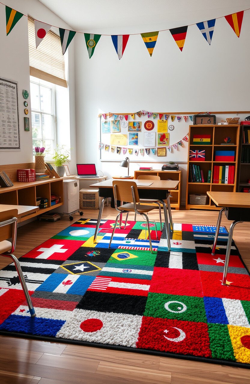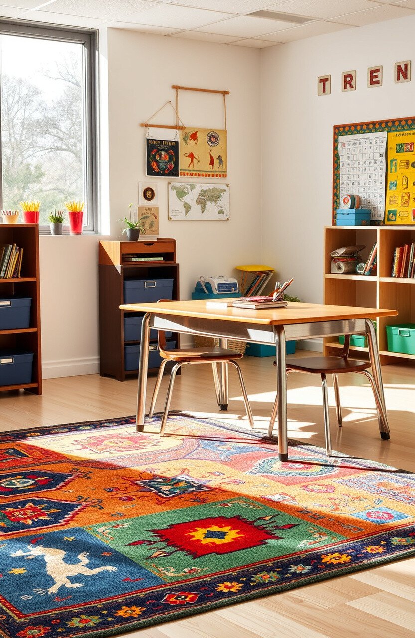 Tribal patterned rugs can introduce cultural richness. They add texture and diversity to classroom decor.
