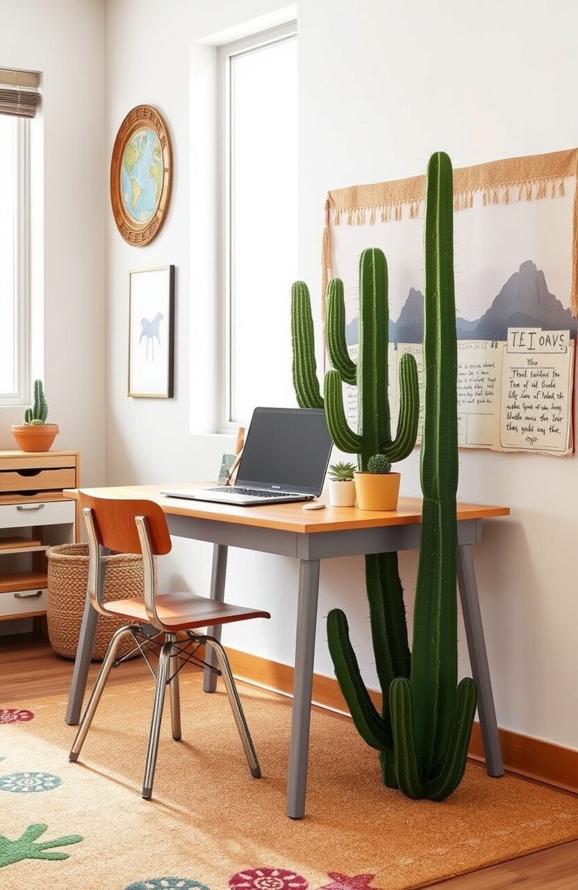 Desert-themed rugs can bring a touch of the southwest indoors. They add a warm and earthy touch to desks.
