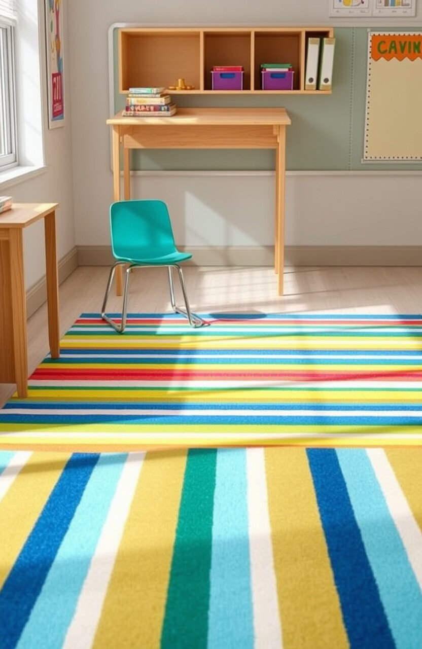 Rainbow striped rugs are like a burst of joy in the classroom. They can create a cheerful environment that encourages happiness.