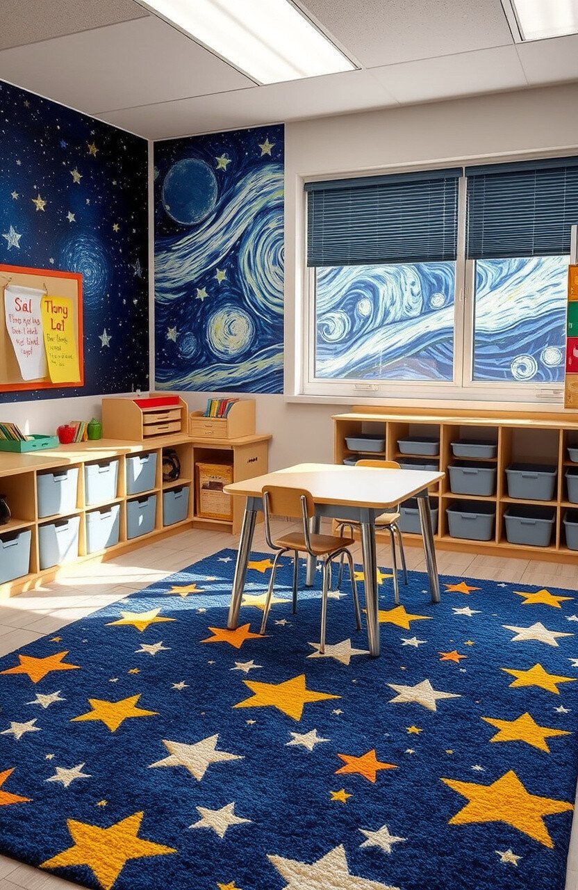 Celestial-themed rugs can take students on a cosmic journey. They add a sense of wonder and curiosity to desks.