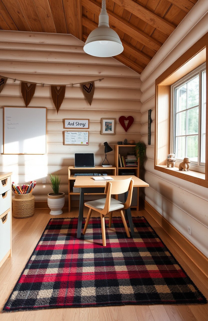 Cabin-themed rugs can create a warm and inviting atmosphere. They add a rustic and homey touch to desks.
