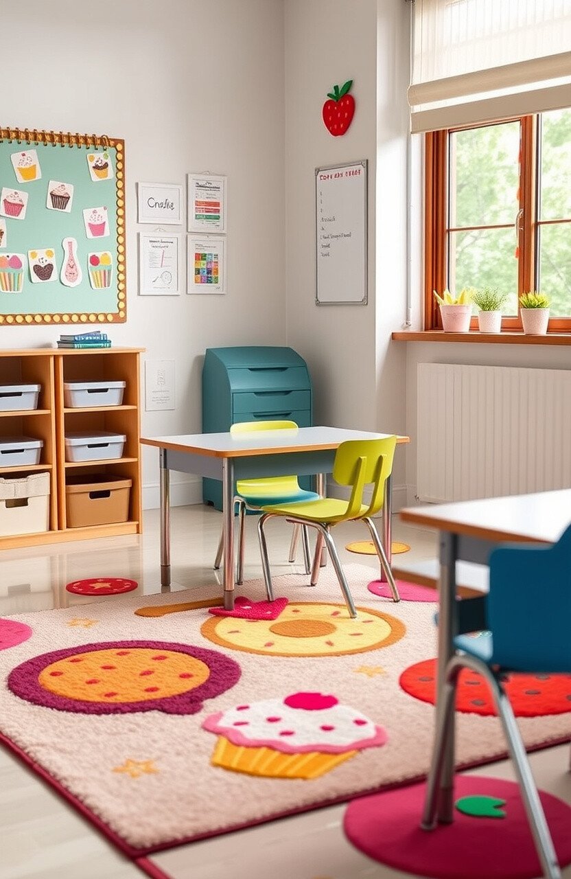 Food-themed rugs can bring a playful and fun touch to classrooms. They add a sense of joy and creativity to desks.