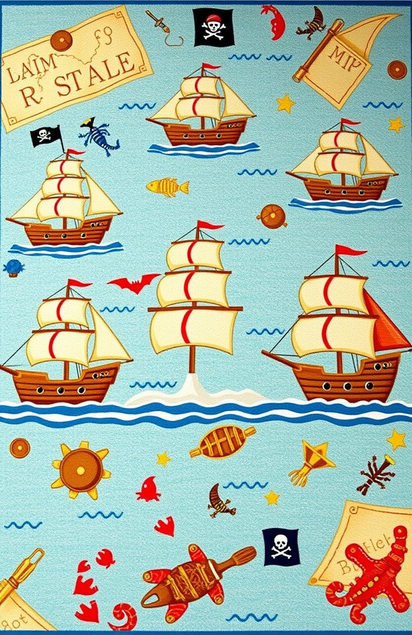 Set sail on a pirate adventure with this nautical-themed rug. Ships, treasure maps, and sea creatures fill the design with excitement.