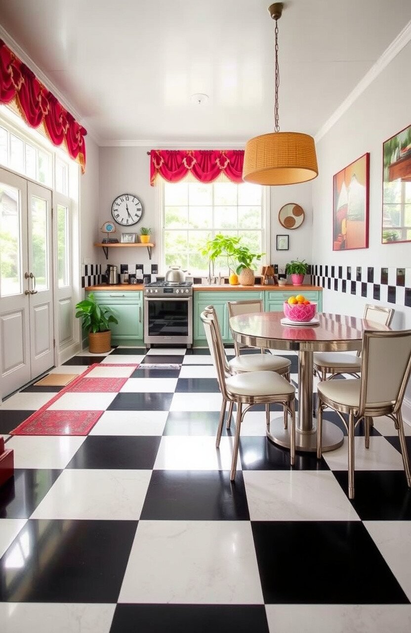 Consider using a checkerboard rug in a kitchen or dining room for a touch of nostalgia. It’s like stepping into a vintage diner.