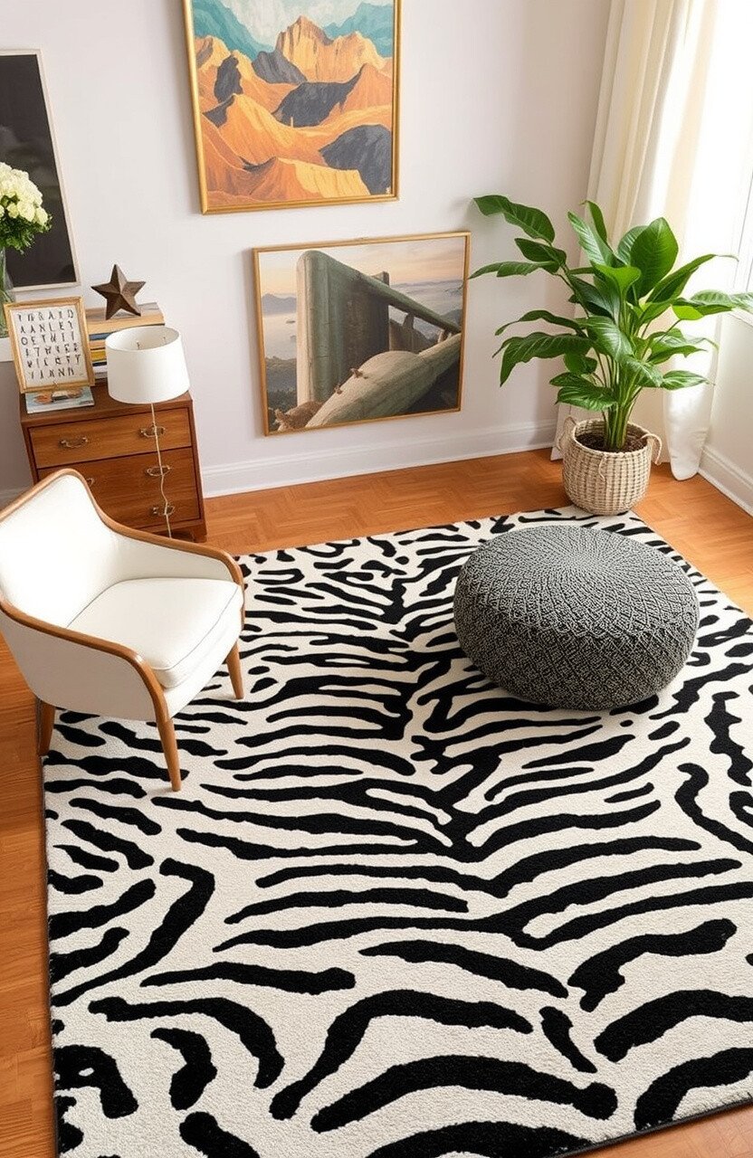 Consider using an animal print rug in a living room or bedroom for a touch of drama. It’s like having a safari right in your home.