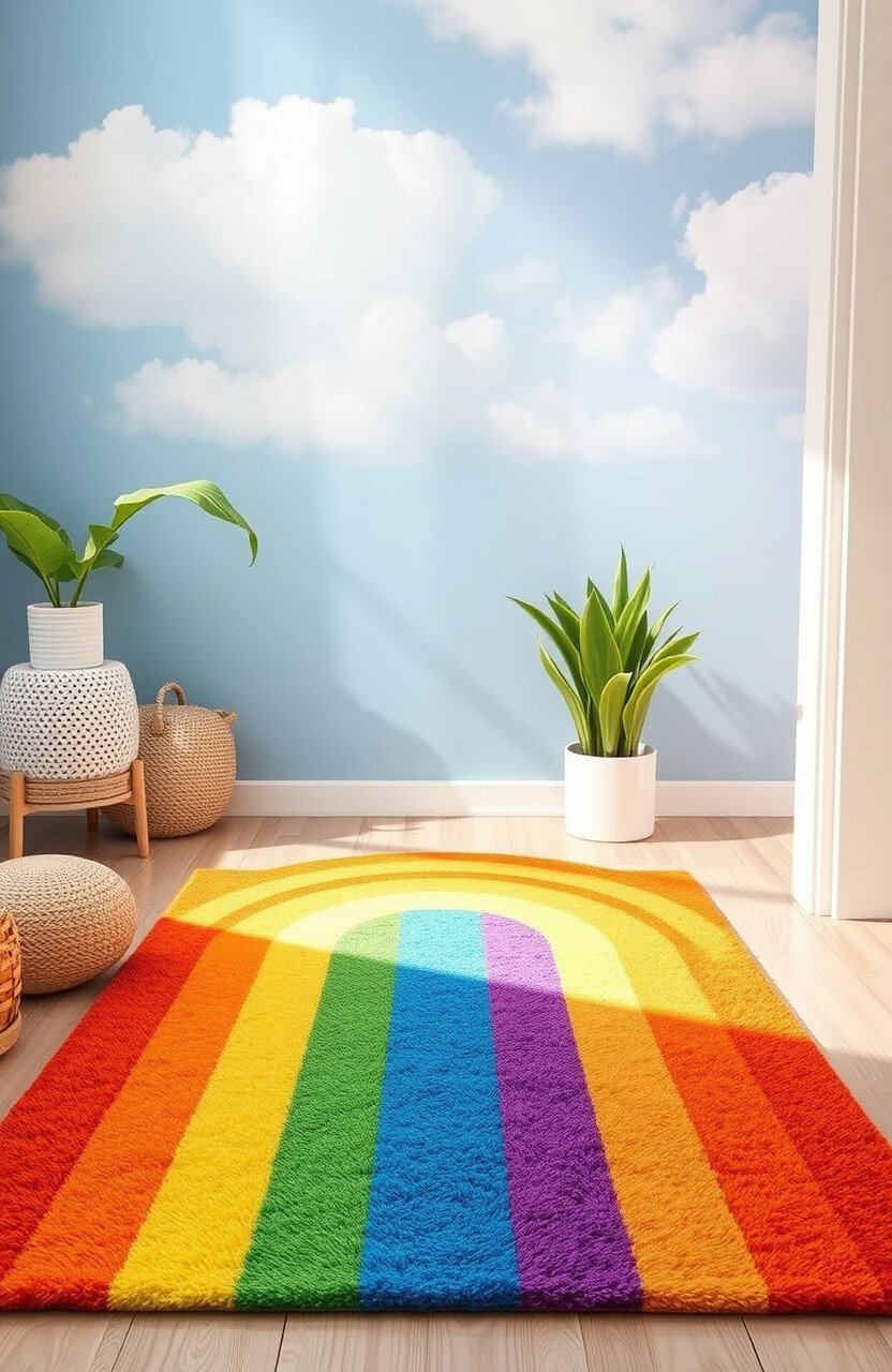 Place a rainbow rug in a playroom to create a cheerful environment. It’s like having a party on your floor every day!