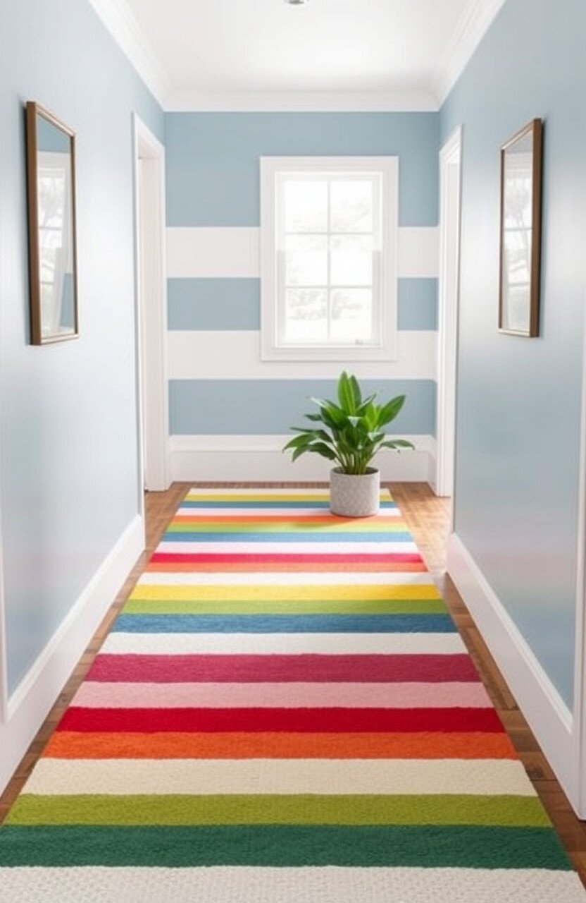 Consider using a bold striped rug in a hallway or entryway to make a statement. It’s like rolling out the red carpet every day!