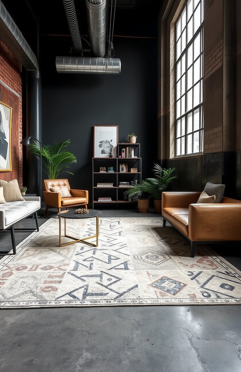 Try pairing a vibrant geometric rug with neutral furniture to make it pop. You’ll find that it can easily become the centerpiece of the room.